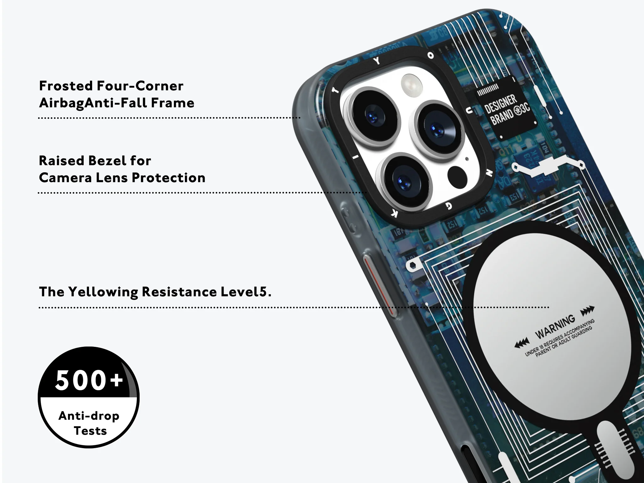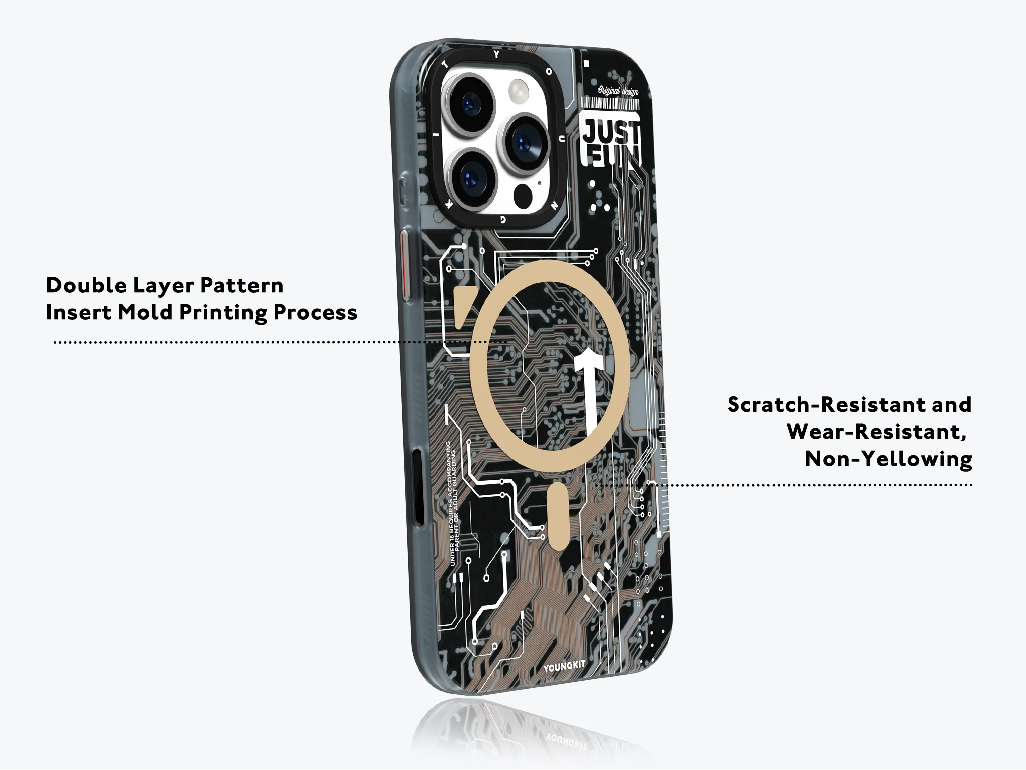 الگوهای برگرفته از بردهای الکترونیکی، با استایلی مدرن و صنعتی تلفیق شدهاند تا جلوهای از هنر تکنولوژی آینده را به گوشی شما ببخشند.